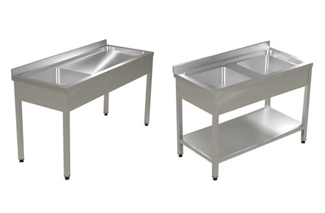 Paslanmaz saç üst tablalı, tamamı AISI304 kalite 18/8 Cr-Nİ paslanmaz çelik saçtan üretilmiştir. Ayaklar ve taşıyıcı konstrüksiyonda paslanmaz çelik kutu profil kullanılmıştır.